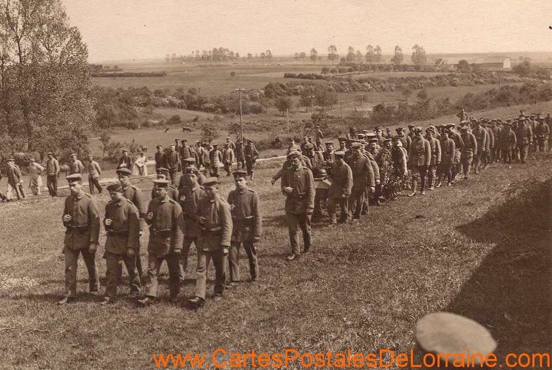 Sur les photos on peut voir le cercueil du Flugzeug Füher Merkl recevoir les honneurs militaires avant d'être acheminé vers le cimetière militaire allemand de Chambley où il reposera à la tombe n° 292 . Le corps de Merkl ne sera transféré qu’après la guerre au cimetière militaire allemand de Maizeray où il repose actuellement